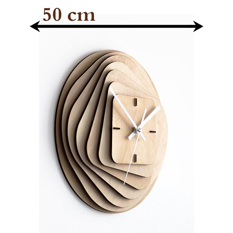 Home Gallery - ساعة حائط دائرية إلى مربعة مصنوعة من الخشب من هوم جاليري، مقاس 50 سم