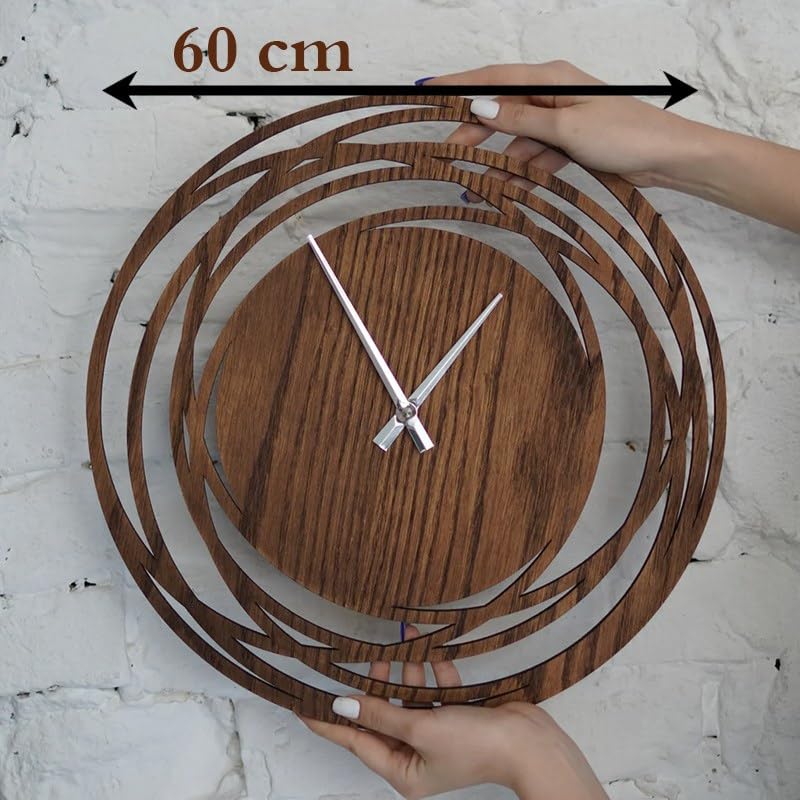Home Gallery - ساعة حائط بتصميم ريفي فريد، بني، 60 سم، من هوم جالاري، خشب مُصنع، تناظري