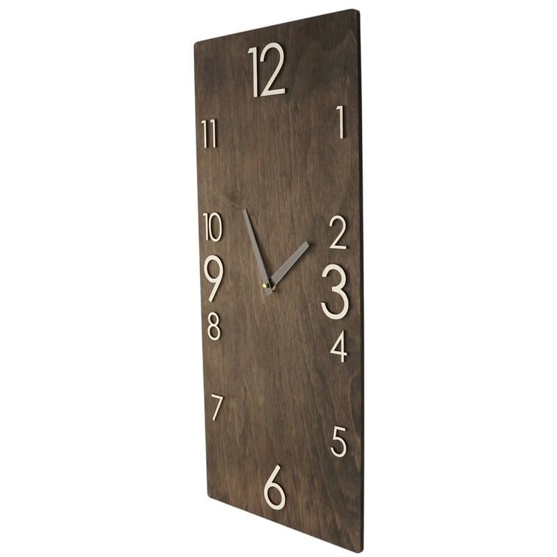 Home Gallery - ساعة خشبية رفيعة معلقة 40 سم من هوم جاليري، خشب مُصنع، بني، تناظري