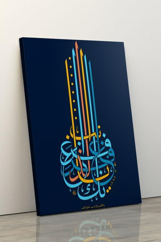 Home Gallery - لوحة فنية جدارية قماشية مطبوعة يا غافر الدناب غفرانك تعني انت الله الوحيد، مقاس 60×40، أزرق