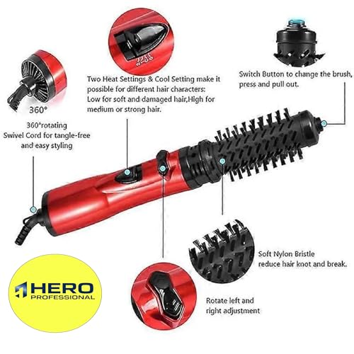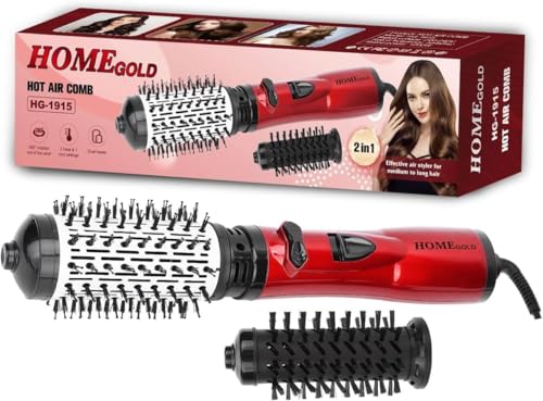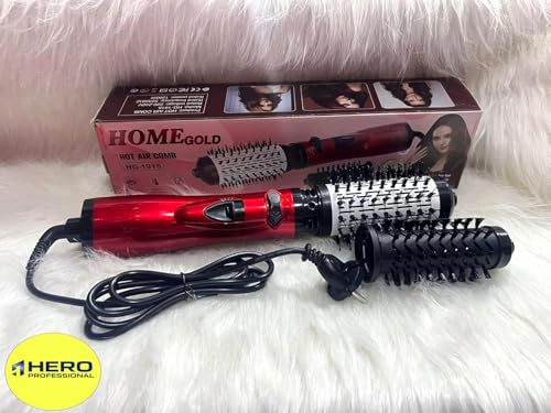 Home Gold - استشوار ومصفف وفرشاه شعر دواره 2 في 1 مع لجميع أنواع 2 إعدادات الحرارة إعداد بارد لتصفيف بسلك دوار بدرجة 360 خالي من التشابك من HOME GOLD