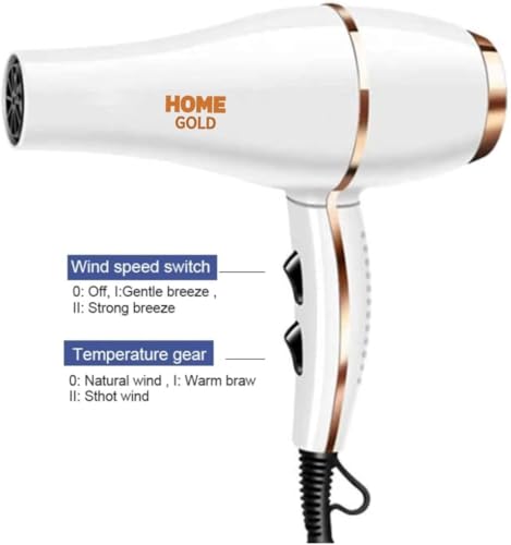 Generic - مجفف شعر هوم جولد 3000 واط - اداء تجفيف فائق باعدادات متعددة، عناية ايونية وحماية من الحرارة الزائدة (HG-688 (ابيض)