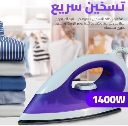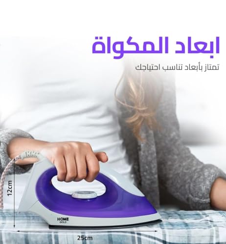 Generic - مكواة جافة من هوم جولد، كي بدون مجهود مع أرضية كبيرة، تسخين سريع لمدة 15 ثانية، أوضاع كي مزدوجة، آمنة من الحرارة الزائدة، طاقة 1400 وات، طلاء غير لاصق، HG-898A (أرجواني)