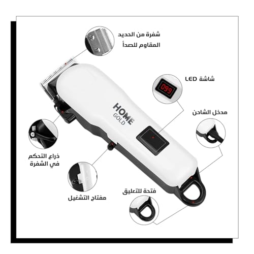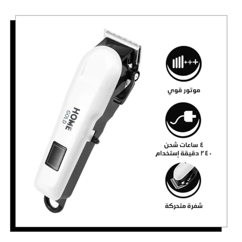 - محرك قوي: مزودة بأقوى محرك هزاز V5000، تضمن ماكينة حلاقة الشعر هوم جولد أداء قص فعال ودقيق لجميع أنواع الشعر.
