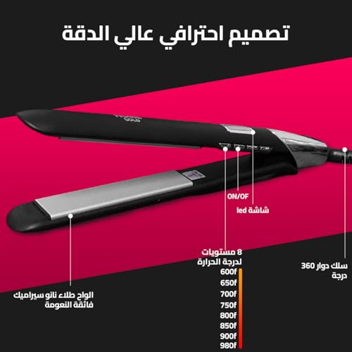 Generic - مكواة فرد الشعر من هوم جولد تصفيف بجودة صالونات التجميل مع حرارة 980 درجة فهرنهايت مثالية للشعر المجعد تسخين في 30 ثانية وسلك دوار 360 35 وات لون أسود موديل HG-805 سيراميك