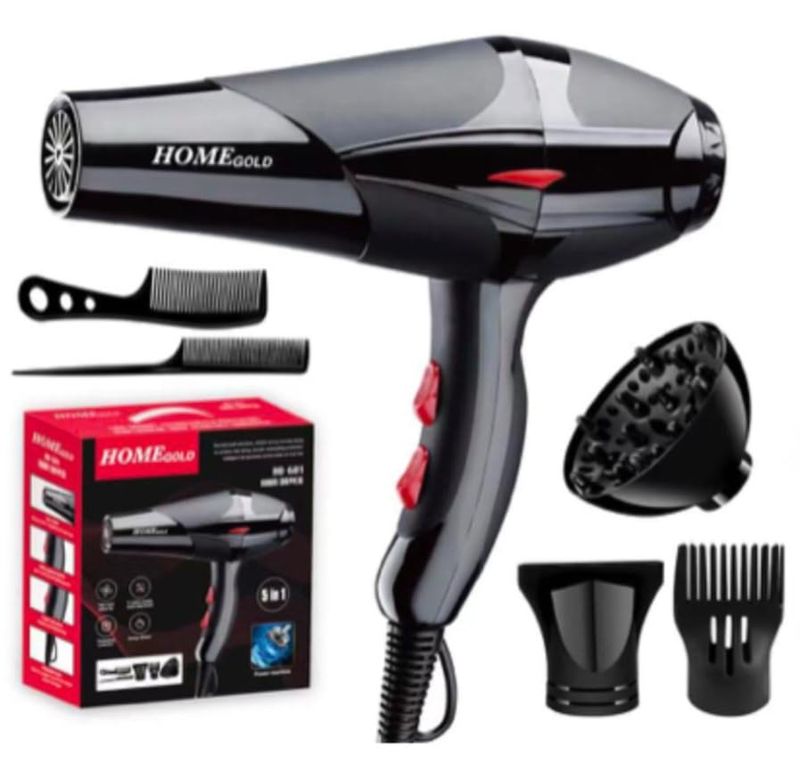 - ✪️ مجفف شعر هوم جولد 5 × 1 بقدرة 4000 وات وملحقات متعددة