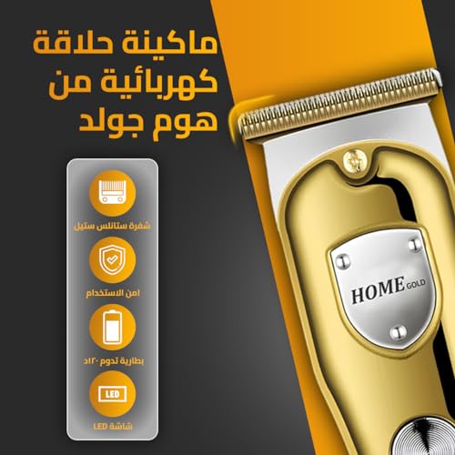Home Gold - ماكينة احترافية لحلاقة وقص الشعر من هوم جولد شفرة الفولاذ المقاوم للصدأ وقت تشغيل ممتد 120 دقيقة قص حاد دقيق موديل HG-902 لون ذهبي