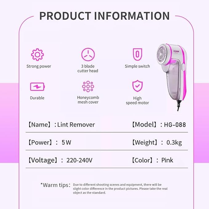 Generic - مزيل الوبر للملابس من هوم جولد - ماكينة حلاقة الوبر وشبكة خلية النحل، سعة عالية، محمولة وسهلة الاستخدام، تصميم مريح مع صندوق كرة شعر مرئي، HG-088 (وردي وأبيض)