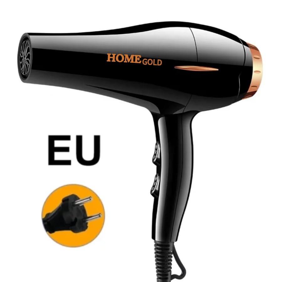 Generic - مجفف شعر استشوار احترافي هوم جولد اسود 3000واط مع عدد 2 مشط ومكثف حرارة و ديفيوزر كيرلي
