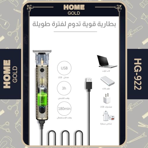 Generic - ماكينة حلاقة الشعر الاحترافية من هوم جولد لقص بدقة مع شفرة الستيل الكربوني وبطارية طويلة الأمد كهربائية للرجال HG-922