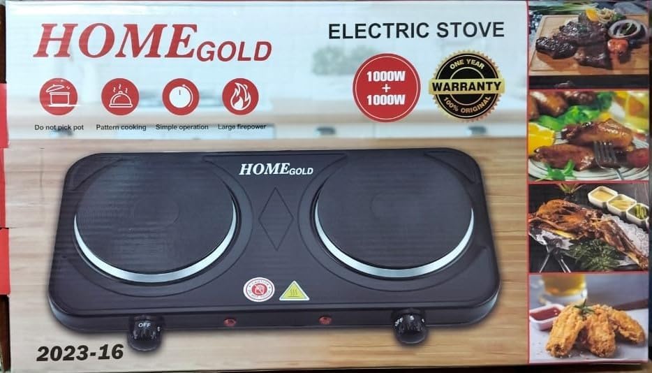 - بوتجاز كهربائي مسطح مزدوج من هوم جولد استانيلس 1000 + 1000 وات لون اسود -16-2023