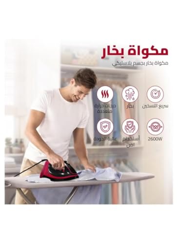 Generic - جهاز كي بخار من هوم جولد للكي بدون مجهود مع تسخين سريع وأوضاع مزدوجة وميزات أمان متقدمة - قدرة 2600 وات، طلاء سيراميك، وتحكم متغير في البخار، HG-803 (أحمر)