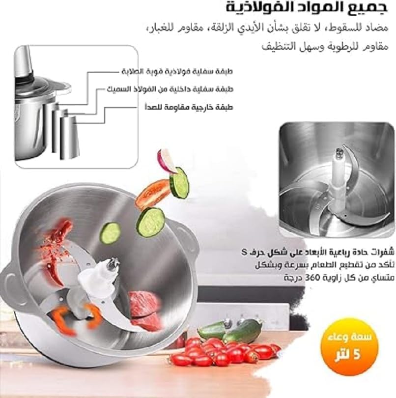 - تتيح لك ميزة ضبط السرعة تخصيص سرعة الخلاط حسب رغبتك. سعة 5 لتر: