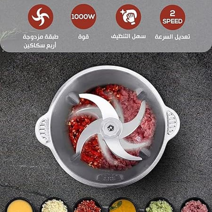 - يحتوي خلاط سوبر بلندر بمبشرة ومطحنة من هوم جولد على أربع سكاكين مزدوجة الطبقات، والتي يمكنها تقطيع الطعام وطحنه وخلطه بسرعة وبشكل متساوٍ. بقوة 1000 وات: