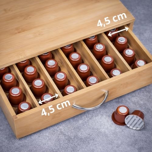 Home in Smart - درج كبسولات قهوة من خشب الخيزران 100% صديق للبيئة مع 6 مساحات تخزين بمقاس شامل من هوم ان سمارت أبعاد المنتج: 33 × 31 × 8 سم.