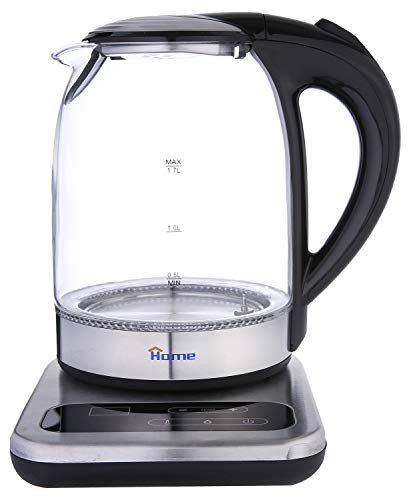 HOME - غلاية كهربائية زجاجية سعة 1.7 لتر من هوم K431، سوداء وشفافة