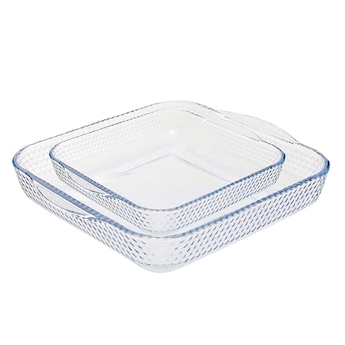 Home Maker - طقم أطباق زجاجية مربعة الشكل على شكل قرص العسل من هوم ميكر، طقم من قطعتين