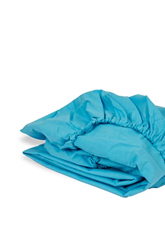 Home of Linen - ملاءة بحواف مطاطية مصنوعة من القطن 100% من هوم اوف لينين، 1 × 2 م، لون تركواز