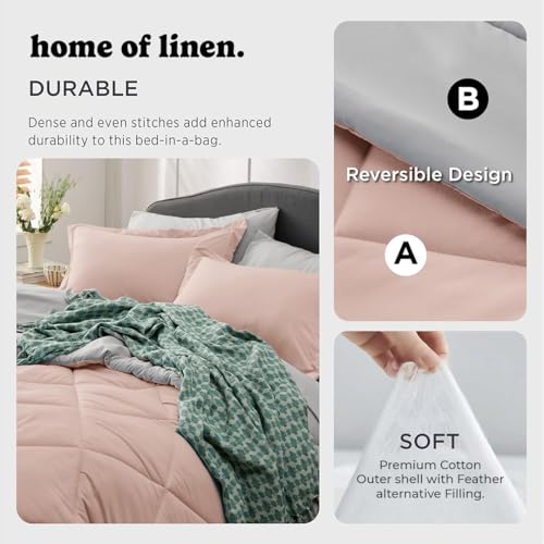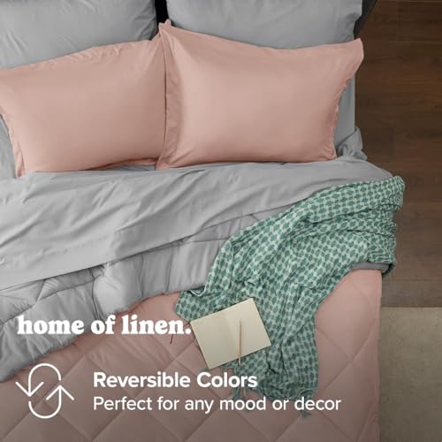 Home Of Linen - طقم لحاف ثقيل قابل للاستخدام على الوجهين من هوم اوف لينين 3 قطع - 3.6 كجم - حشوة صناعية بديلة للريش - للمرتبة 160 سم - 180 - مقاس 230×240 + 2 غطاء وسادة 50 × 70 - خوخي رمادي