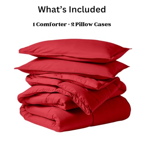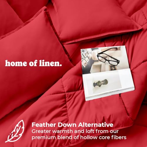 Home Of Linen - طقم لحاف ثقيل 3 قطع من القطن سادة من هوم اوف لينين - 4 كجم - حشوة بديلة - (للمرتبة 1.80 متر/ 2.00 متر) - مقاس (2.50 متر × 2.40 متر) + 2 كيس مخدة (50 سم × 70 سم) - أحمر