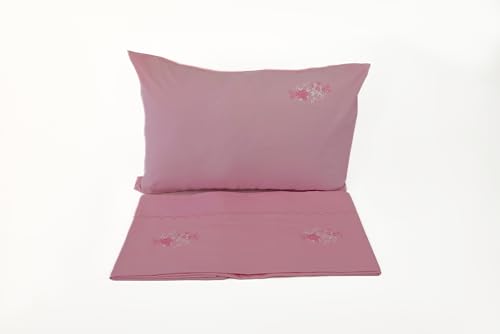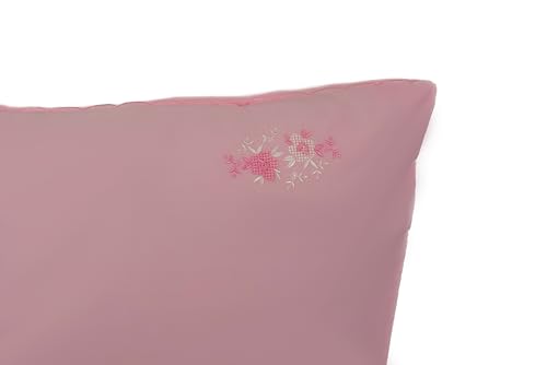 Home Of Linen - طقم ملاءة مطرزة من 5 قطع هوم اوف لينين 1 مسطحة 2.4×2.6 متر مع 2 كيس مخدة مطرز 50×70 سم و2 سادة كبير جدًا 1.6 × 45 وردي - 303 كتان