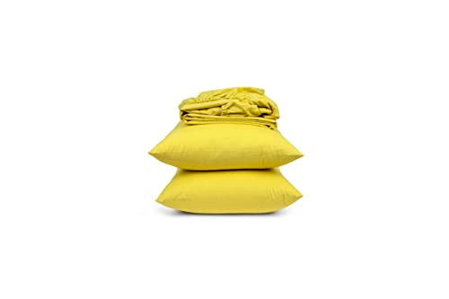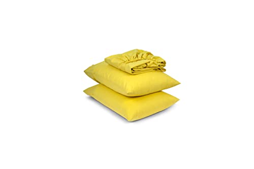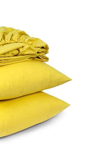 Home of Linen - طقم ملاية سرير بحواف باستك من هوم اوف لينين، مقاس 180 × 200 سم، لون ليموني، قطن، سادة