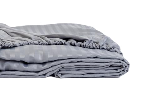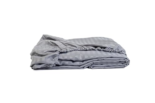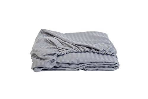 Home Of Linen - ملاية مخططة بأستك من القطن الممشط للفنادق وديكور من هوم اوف لينين- 1 × ملاية بأستك مقاس 1.6 متر × 2 متر - لمراتب يصل ارتفاعها إلى 30 سم - فضي
