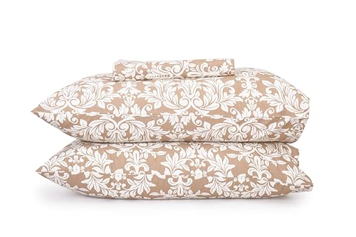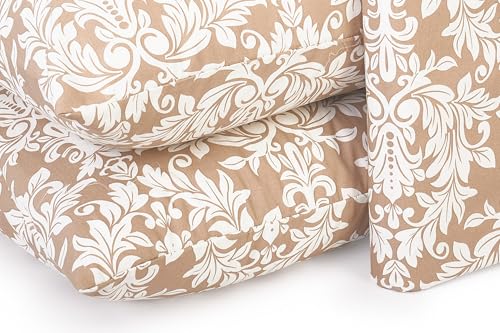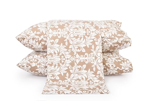Home Of Linen - ملاية سرير من القطن مطبوعة هوم اوف لينينز - طقم 5 قطع لسرير مزدوج - مسطحة واحدة (2.4 متر × 2.4 + 4 أكياس مخدات (50 سم 70 - موديل 710