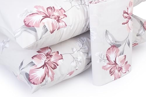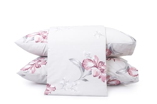 Home Of Linen - طقم سرير مطبوع من هوم اوف لينينز - 5 قطع لسرير مزدوج - 1 ملاية مسطحة (240 سم × 240 سم) + 4 أغطية وسائد (50 سم × 70 سم) - قطن - موديل 719