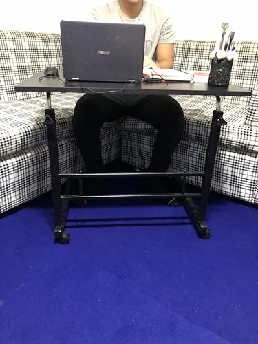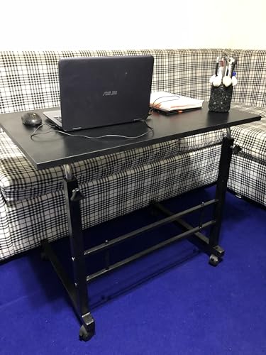OPEX - طاولة منزلية متنقلة بسطح صلب للكمبيوتر المحمول، قابلة لتعديل الارتفاع بهيكل معدني وسطح خشبي مع بكرة، طاولة فوق السرير اوف وايت - المقاس: 50 × 70 سم) ارتفاع قابل للتعديل من 65 إلى 85 سم