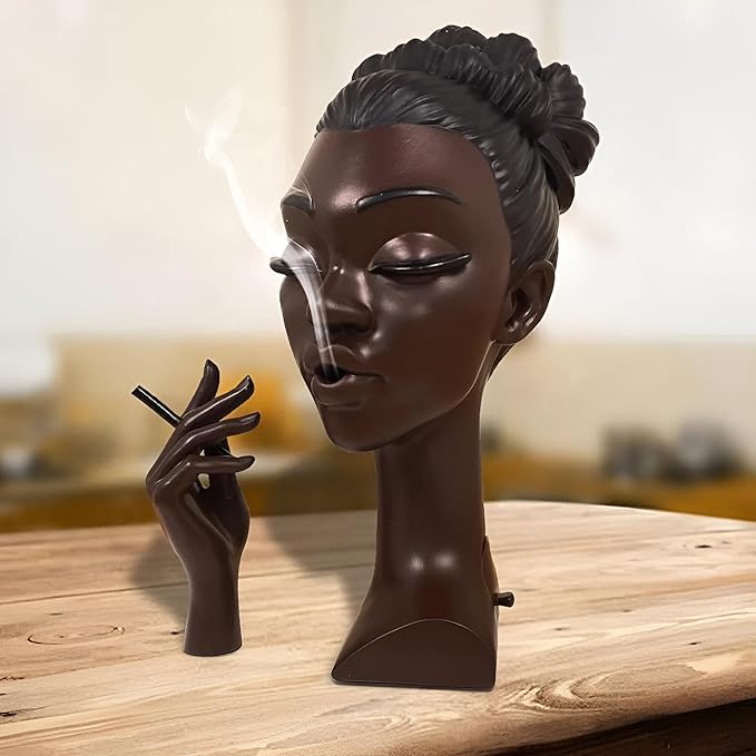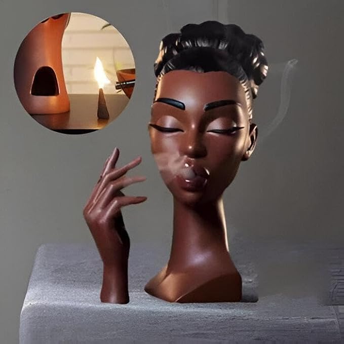 Generic - مبخرة على شكل رأس امرأة، حامل بخور فني على شكل تمثال امرأة أفريقية، مجموعة أنيقة من قطعتين