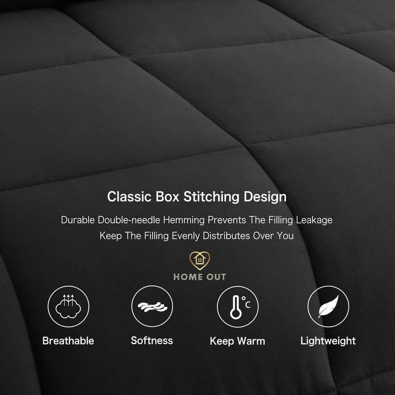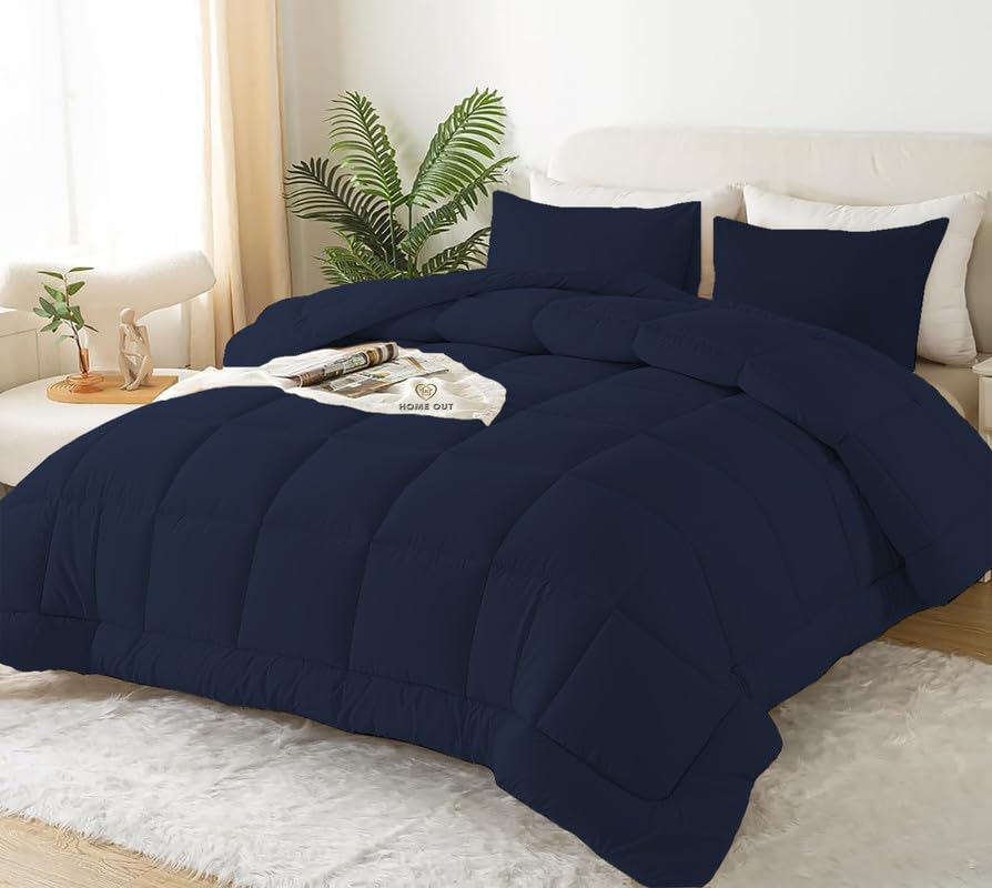 Home Out - طقم لحاف شتوي مريح من هوم اوت: القطن المصري الفاخر بحشو فايبر فائق النعومة لسرير فردي مقاس 1.8× 2.4 متر | أزرق داكن