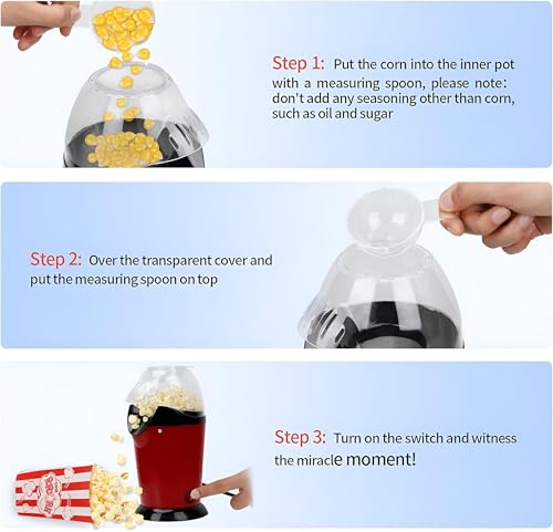 Generic - ماكينة صنع الفشار المنزلية لأمسيات الأفلام الممتعة - صانع فشار كهربائي صحي خالٍ من الزيوت بقدرة 1200 واط - استمتع بالفشار الطازج والمقرمش مع عائلتك في ثوانٍ