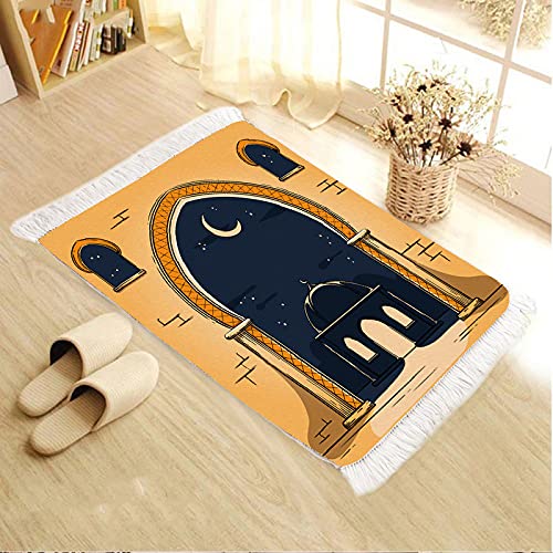 Home Print - سجادة صلاه صغيرة قطيفه إيطالي مطبتنة بفيبر لراحة الركب و رأس 50في90 سم، مخمل، متعدد الألوان