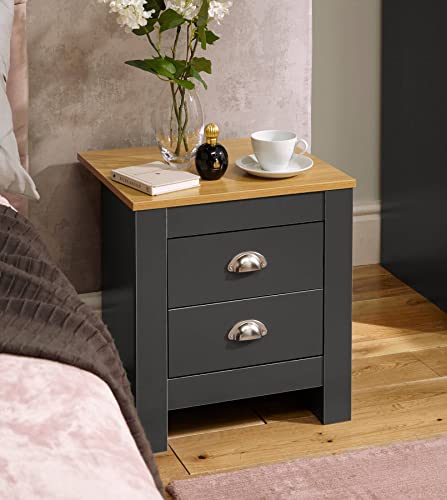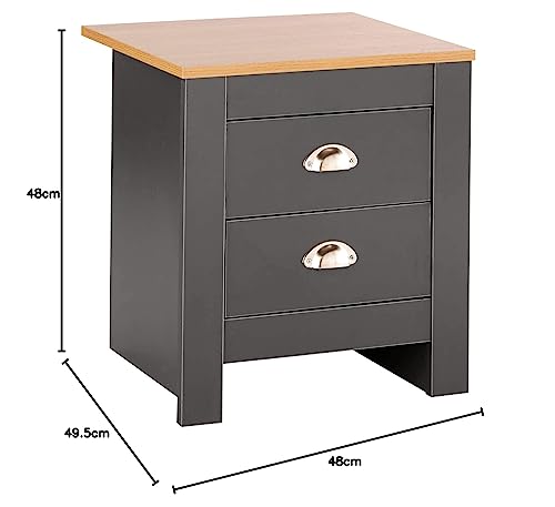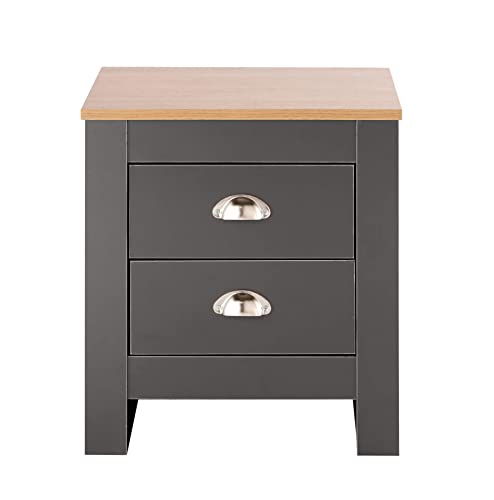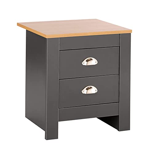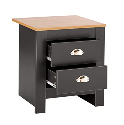 Home Source - ترابيزة صغيرة بجانب السرير مصنوعة من الخشب مع ادراج تخزين بلمسة نهائية خشبية من هوم سورس - بلون جرافيت