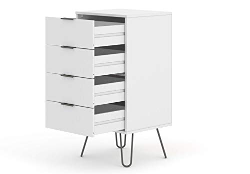 Home Source - خزانة ادراج لغرفة النوم وغرفة المعيشة مع مقابض معدنية من هوم سورس، خشب مصمم هندسيا، ابيض، 4