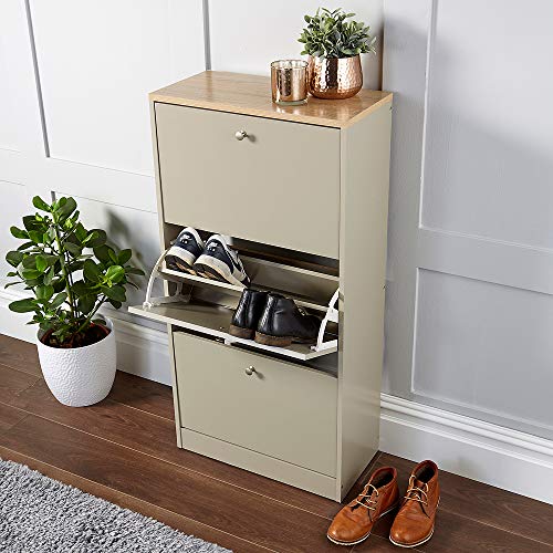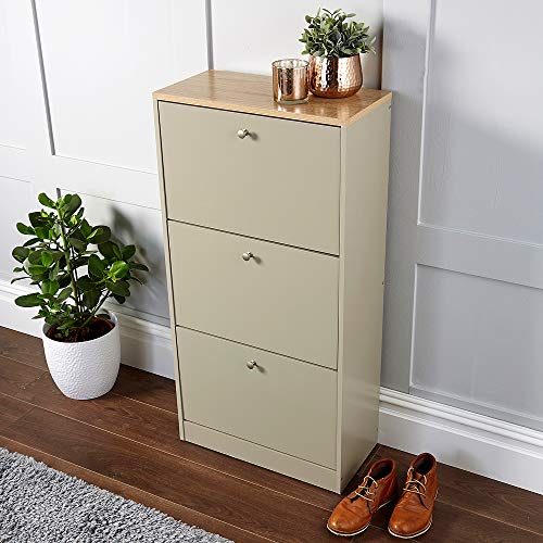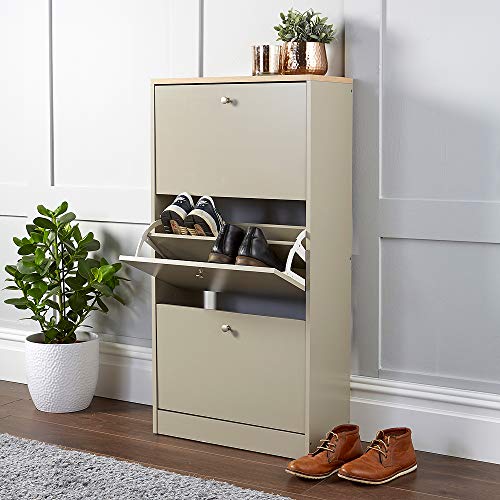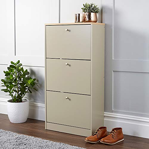 Home Source - خزانة احذية خشبية بـ3 ابواب من خشب البلوط الرمادي هوم سورس بلونين