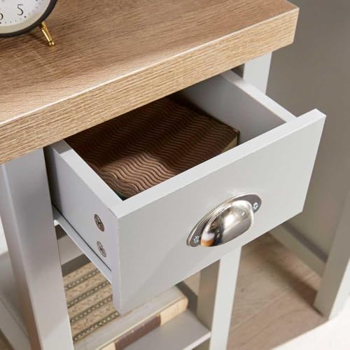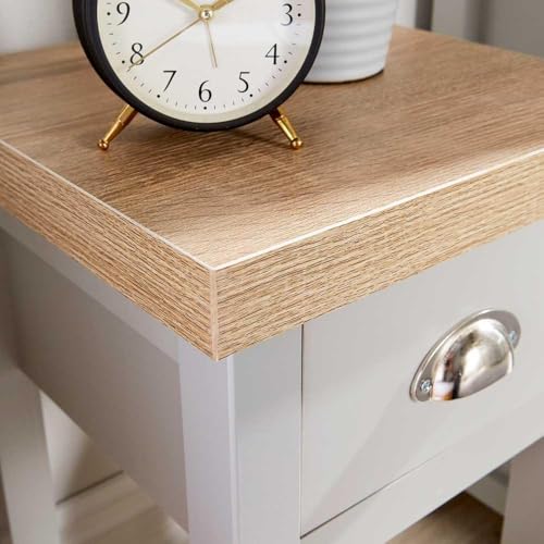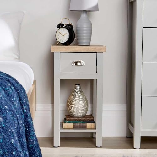 Home Source - دولاب بجانب السرير من هوم سورس، بتصميم ضيق من خشب البلوط، طاولة جانبية للمصباح، منضدة سرير، خشب ليفي متوسط الكثافة، درج واحد، رمادي