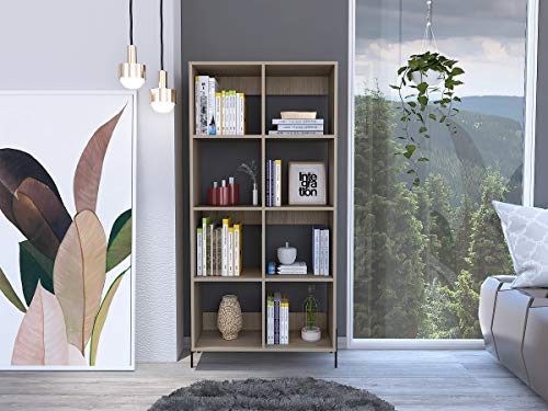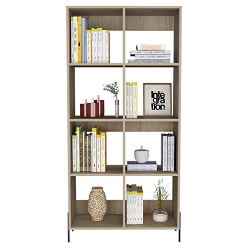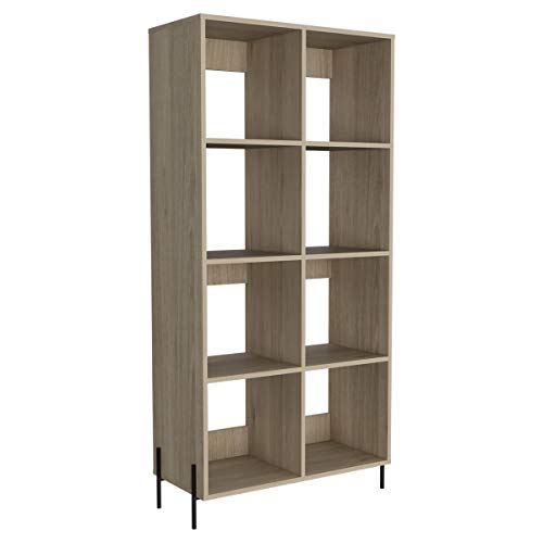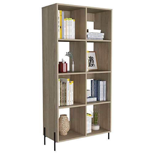 Home Source - دولاب كتب عريضة من خشب البلوط مع 8 أرفف بأرجل سوداء لتخزين وغرفة المعيشة BKSJSPWID، بني، 4 طبقات، من هوم سورس