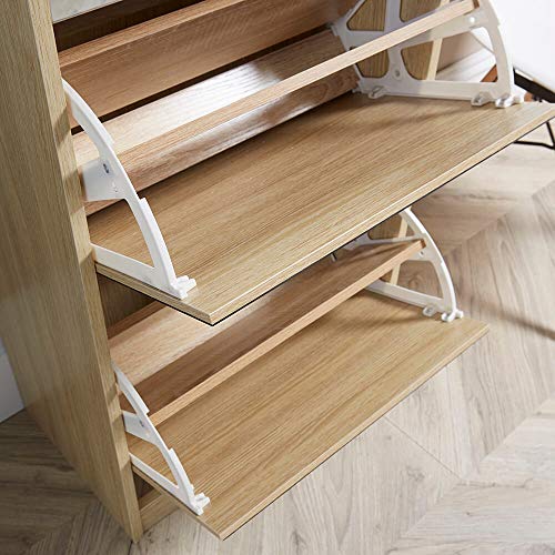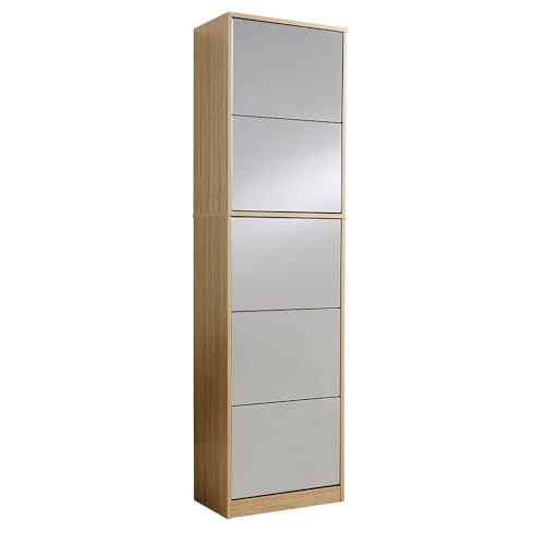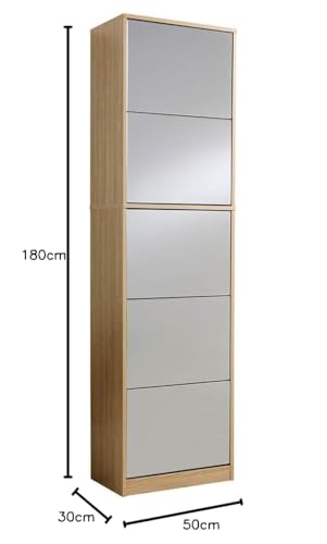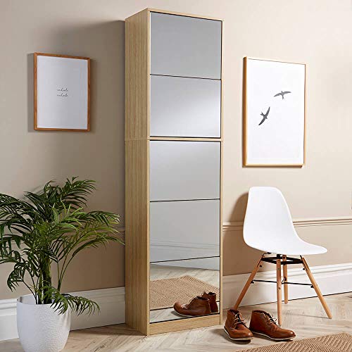 Home Source - دولاب أحذية هوم سورس، دولاب تخزين بمراية لتنظيم الأحذية، مصنوعة من خشب ليفي متوسط الكثافة وبلوط، بطول 1.82 م