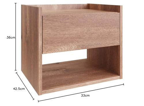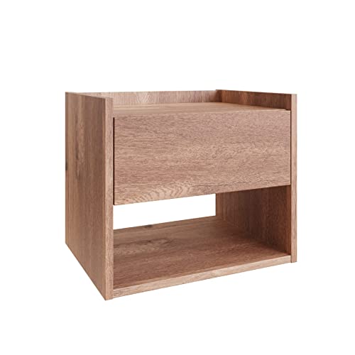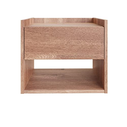 Home Source - هوم سورس خزانة بجانب السرير تثبت على الحائط بدرج واحد، رف تخزين عائم، خشب، بلوط، مقاس S، بيج