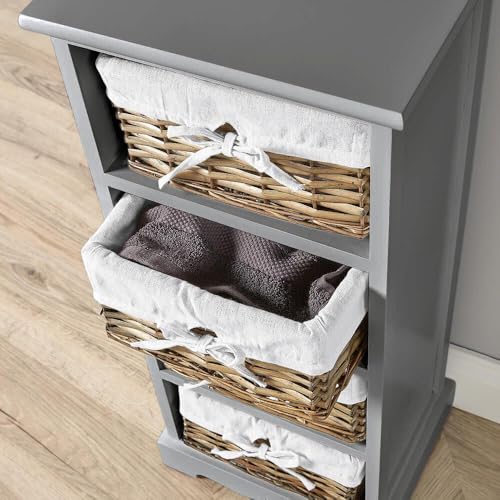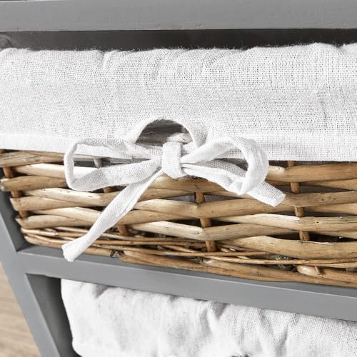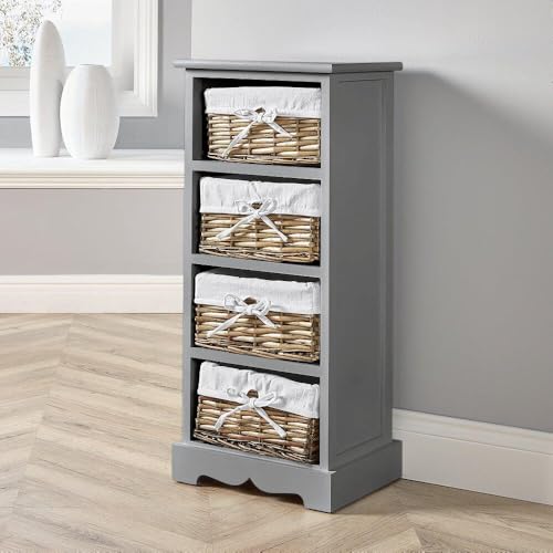 Home Source - وحدة تخزين خشبية من 4 أدراج علي شكل سلة من ورد النيل سميك الساق لون رمادي من هوم سورس