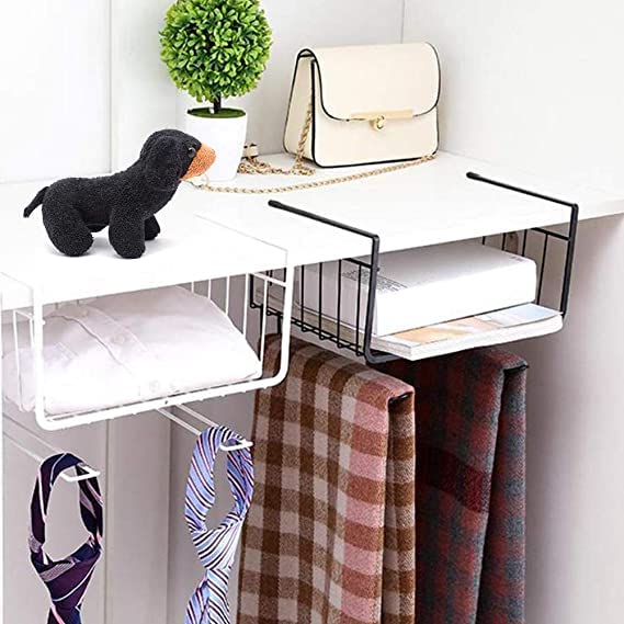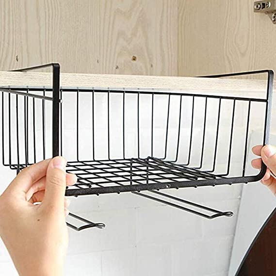 Spaceshoop - سلة تخزين منزلية من الفولاذ مقاوم للصدأ توضع تحت الرف