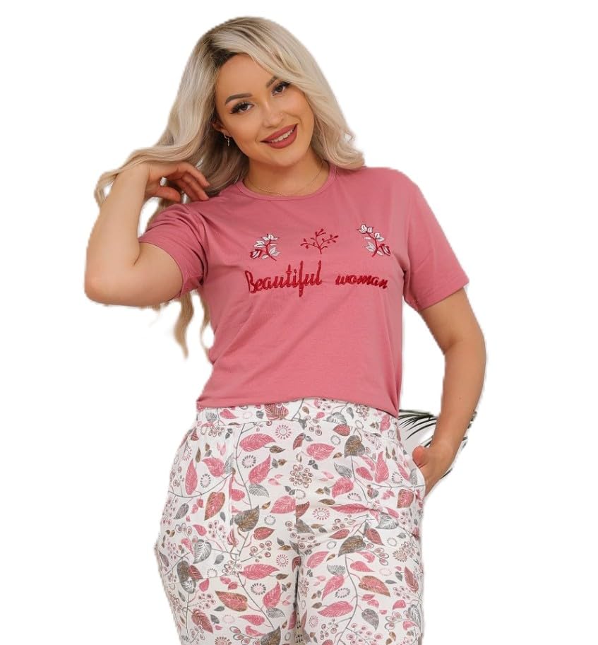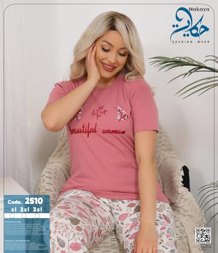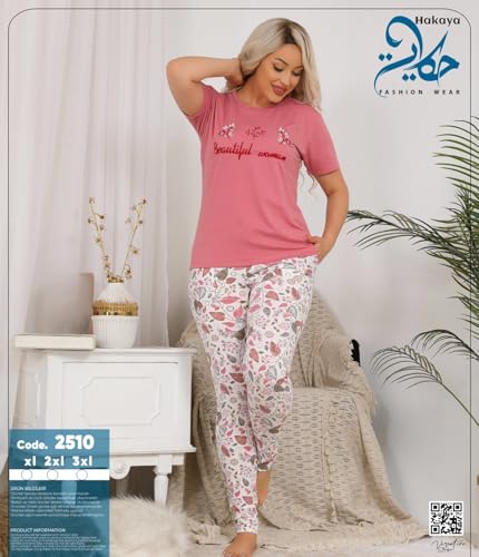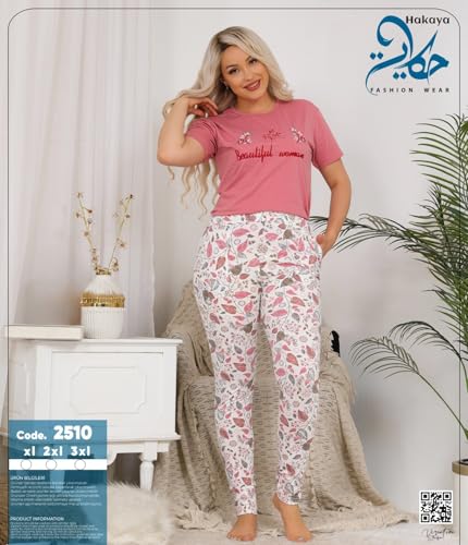 Generic - طقم بيجامة صيفية منزلية من القطن للنساء بتصميم فريد وبسيط منقوش ومصممة خصيصا لتوفير الراحة والاسترخاء في المنزل