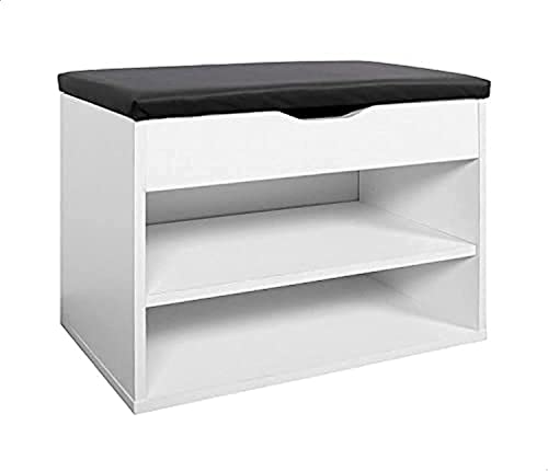 Home2Go - وحدة تحزين احذية بمقعد وارفف من هوم تو جو - ابيض واسود، خشب