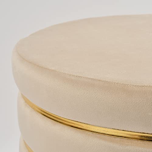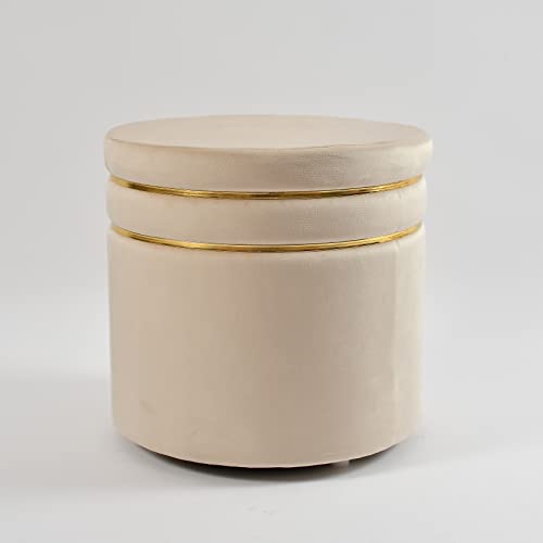 Homeaccex - مقعد عثماني من هوم اكسيكس لغرفة المعيشة والجلوس، كرسي خشبي مخملي منتفخ، مسند للقدمين لديكور المنزل، كرسي طاولة الزينة (ارتفاع 46 سم، اوف وايت)