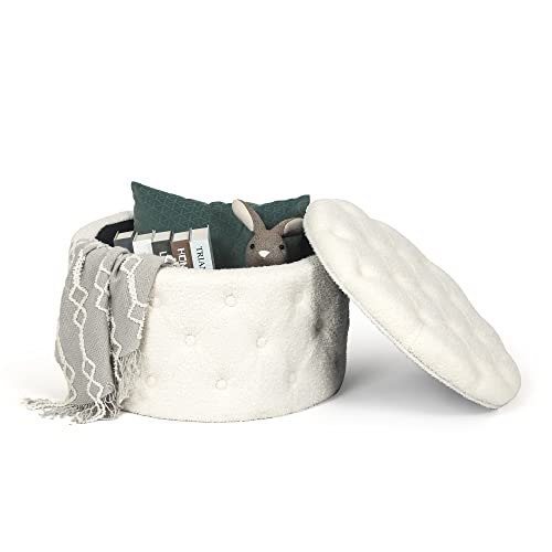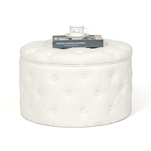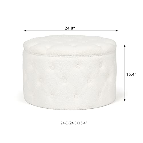 Homebeez - هوم بيز مسند قدم دائري من الفرو الصناعي مقاس 24.8 انش، طاولة قهوة لغرفة المعيشة، لون ابيض