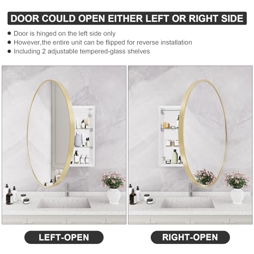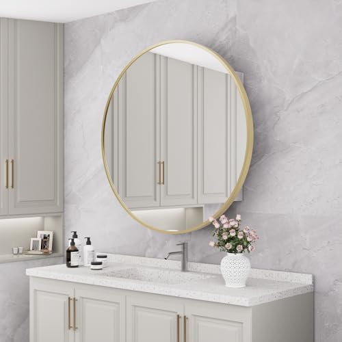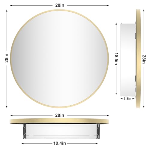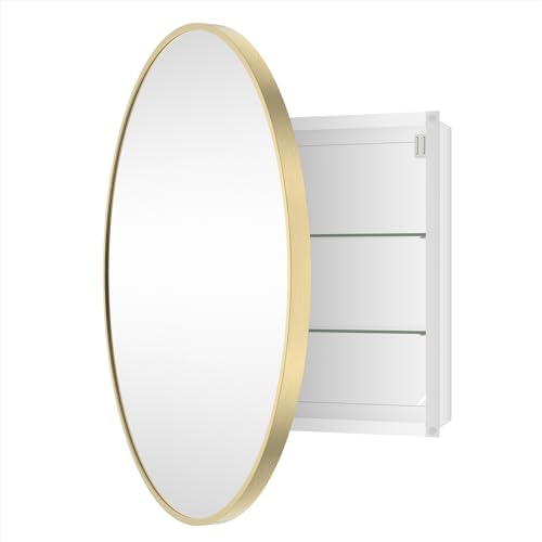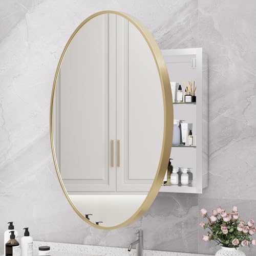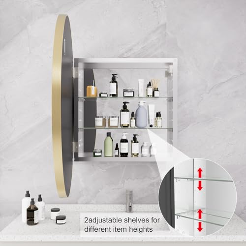 HOMECOOKIN - دواليب أدوية للحمام بمراية، دواليب أدوية دائرية ذهبية بمرآة مثبتة على الحائط بإطار معدني من خليط الألومنيوم، دواليب أدوية مثبتة على السطح مع تخزين، 71.12 سم من هوم كوكين