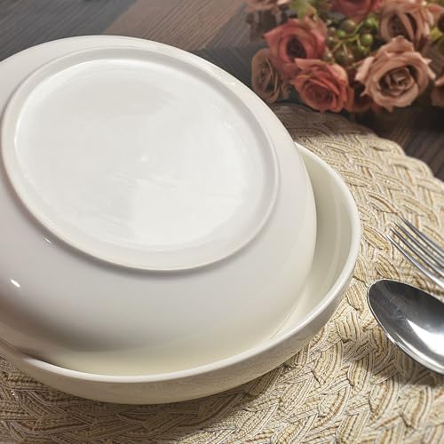 homEdge - مجموعة أطباق باستا عميقة، بولات تقديم بورسلين بسعة 887 مل للسلطة والشوربة والسباجيتي والمكرونة، 6 قطع، أبيض