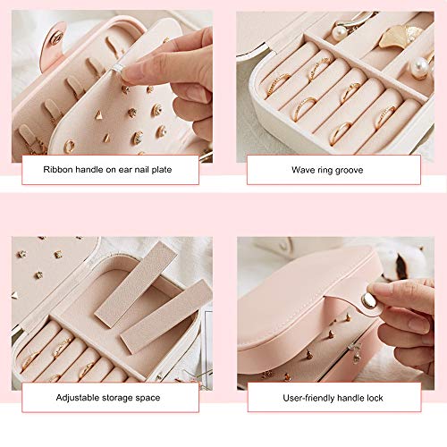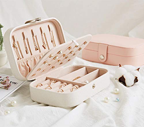HomeFast - صندوق منظم مجوهرات للسفر للنساء، منظم مجوهرات للسفر مزدوج الطبقات للاقراط والاساور والخواتم والقلائد، جلد صناعي، متعدد الألوان